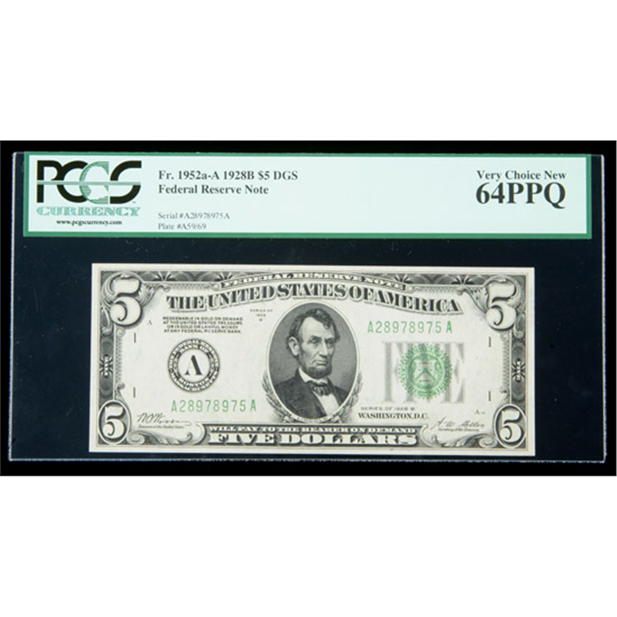 1928-B, $5 Federal Reserve Note. DGS. PCGS Very Choice