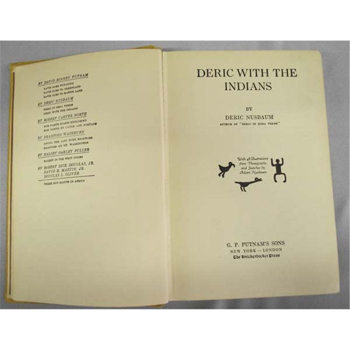 1928 Book ''Deric With the Indians'' by Deric Nusbaum on Native American Indians. Contains full page black & white photos of pueblos, dance ceremonies, Maria, Zunis and Navajos. Hardback with fraying on cover edges. Pages are in good condition. Measures 8''x5.5''. 204 pages. Buyers Pay Actual Shipping and Handling Charges(see terms and conditions for more information).
