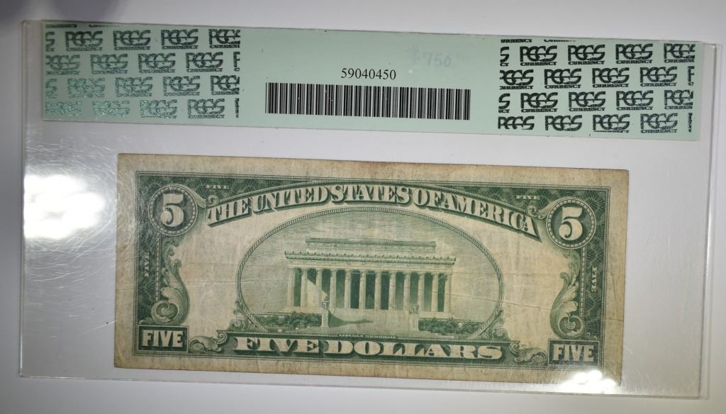 1928-C $5.00 FEDERAL RESERVE NOTE, PCGS-VF-20