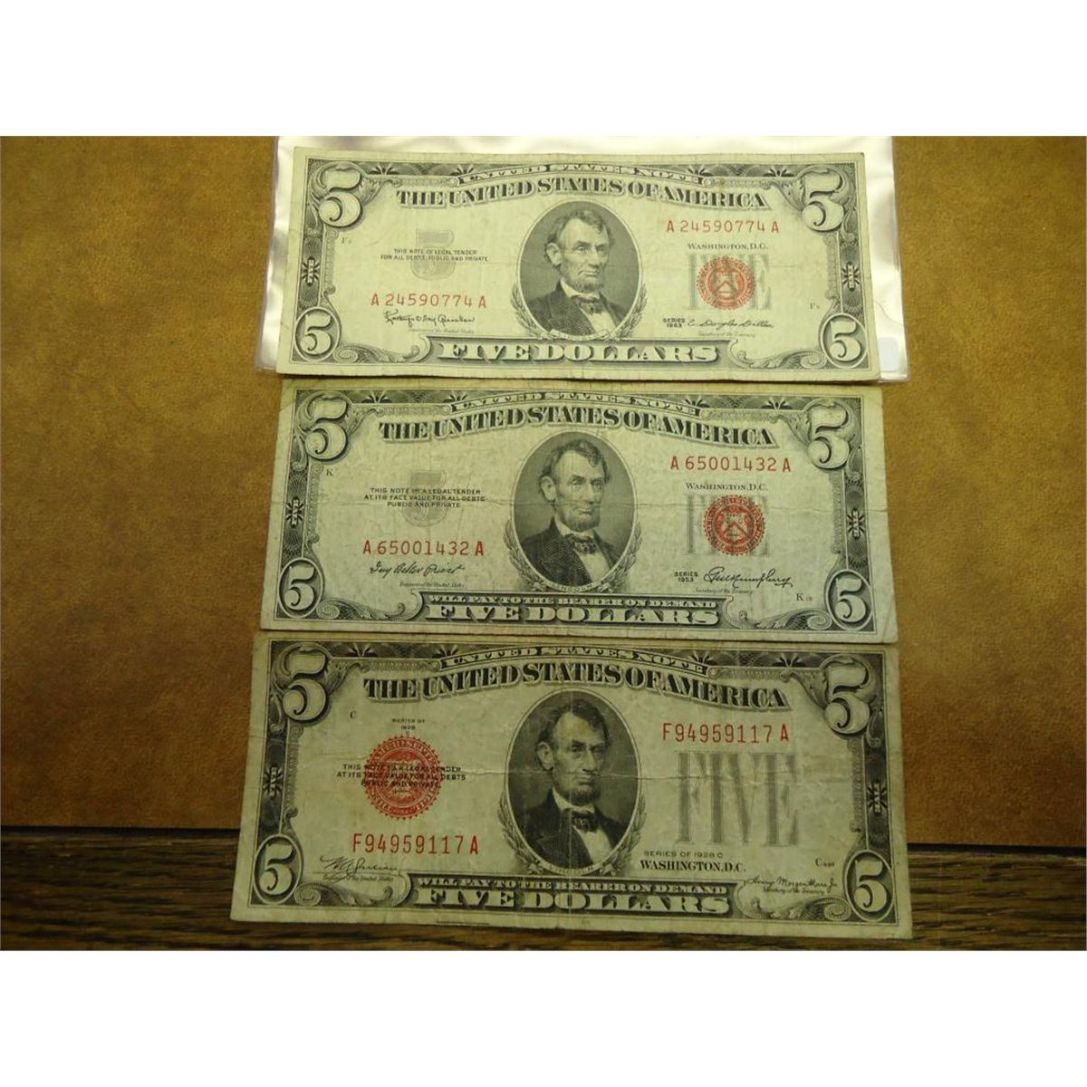 1928-C,53 & 63 $5 US NOTES RED SEAL