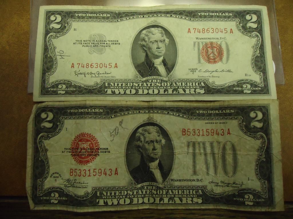 1928-C & 53-C TWO DOLLAR US NOTES RED SEALS