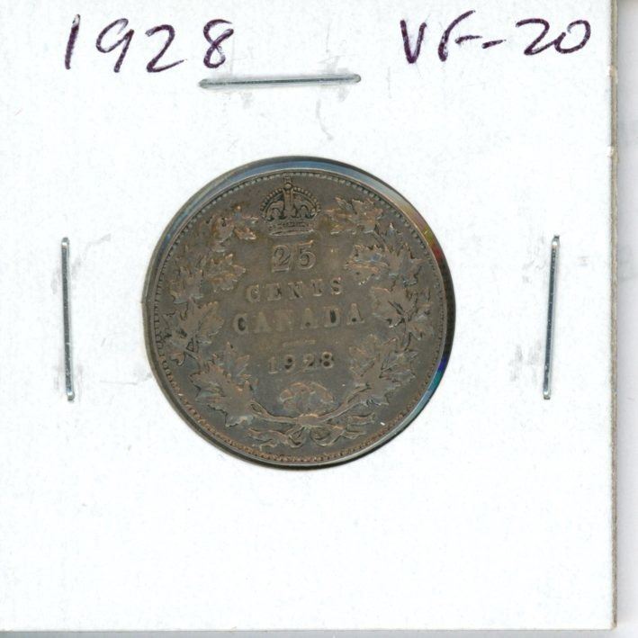 1928 Canadian Silver 25 Cents. VF-20. Nice.