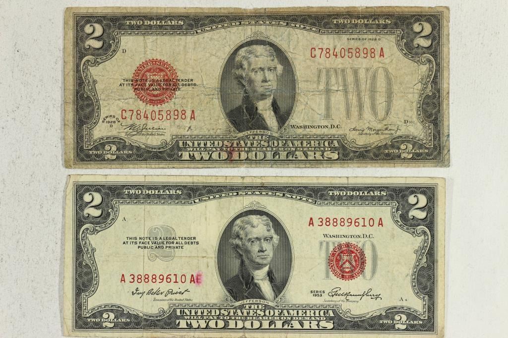1928-D & 1953 $2 US NOTES RED SEALS