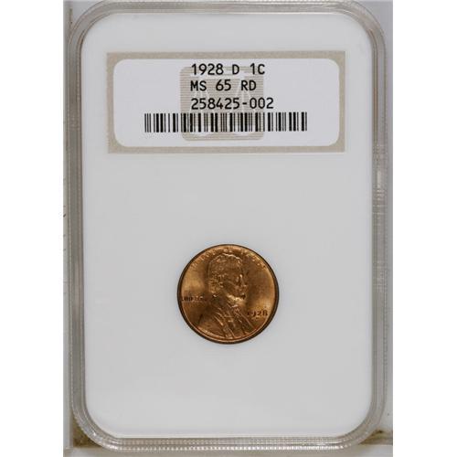 1928-D 1C MS65 Red NGC. A lovely salmon-gold Gem from