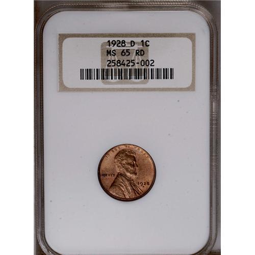 <B>1928-D<1C> MS65 Red NGC.</B></I> Atypically bold with radiant golden-orange surfaces. While not among the most challenging branch mint Lincoln issues from this decade in Uncirculated grades, the 1928-D is decidedly scarce once the Gem/Red level is reached. Census: 31 in 65, 3 finer (7/06).