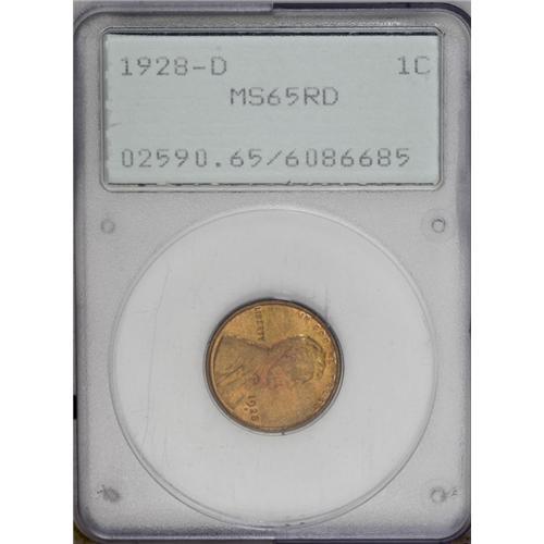 <B>1928-D<1C> MS65 Red PCGS.</B></I> The '28-D is a very elusive issue in Gem condition and with full red color. This is an exceptional piece that displays bright mint luster and a sharp strike throughout. Nearly flawless with just a couple of tiny marks and minimal flyspecks on each side. Housed in a first-generation PCGS holder. Population: 65 in 65 Red, 10 finer (2/06). <BR><BR><B>Important not