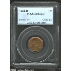 1928-D 1C MS65 Red PCGS. A pleasing full red example of a difficult issue to acquire in this desirab