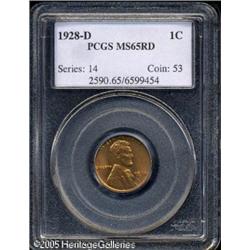 <B>1928-D 1C MS65 Red PCGS.</B></I> Sharply struck, with bright orange patina and subtle greenish accents. Lustrous surfaces are virtually devoid of marks. Population: 65 in 65, 10 finer (1/05). Lot:5507