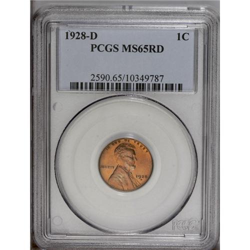 <B>1928-D<1C> MS65 Red PCGS.</B></I> While not quite in the same echelon as the 1928-S, 1927-D, or 1927-S, the 1928-D is still quite scarce in Gem Red condition: PCGS has graded 69 pieces so far, with 11 pieces finer (8/06). This attractive piece offers appealing, lustrous, and pristine brick-red surfaces on both obverse and reverse, with glints of ice-blue on the highpoints and no mentionable carbon.