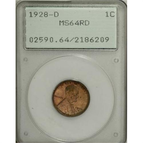 <B>1928-D 1C MS64 Red PCGS.</B></I> PCGS Population (244/84). NGC Census: (52/35). Mintage: 31,170,000. Numismedia Wsl. Price for NGC/PCGS coin in MS64: $220. (#2590)<BR><BR><B>Coin Engraver:</B> Victor D. Brenner<BR><BR><b>Shipping:</b> Coins & Currency (<a target="_blank" href="http://www.heritageauctions.com/common/shipping.php">view shipping information</a>)