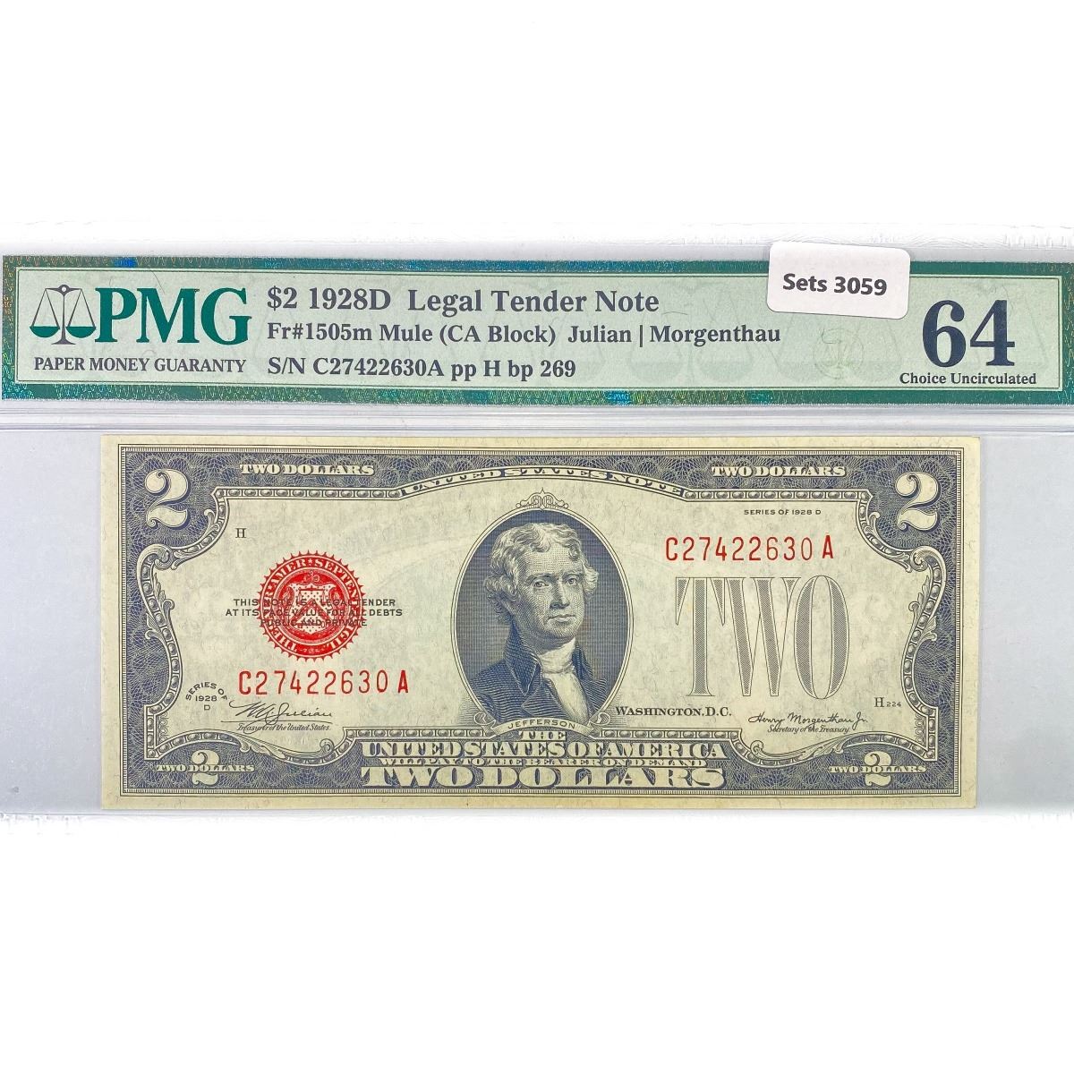 1928 D $2 Legal Tender Notes PMG Ch UNC 64