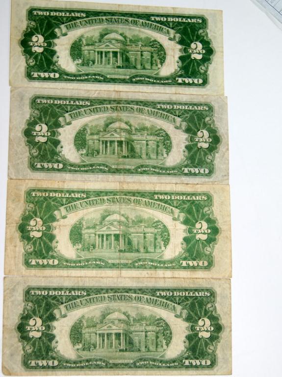 (4) 1928 D $2 Red Seal US Notes - Choice Grade - Sold Times the Money