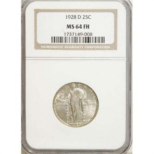 <B>1928-D 25C MS64 Full Head NGC.</B></I> Potent luster exudes from both sides of this near-Gem. Essentially untoned, except for a few wisps of light russet color. A couple of minute handling marks are all that stand in the way of full Gem classification on this Full Head quarter. Census: 20 in 64 Full Head, 31 finer (10/07).<BR><BR><B>Coin Engraver:</B> Hermon A. MacNeil<BR><BR><b>Shipping:</b> Coins & Currency (<a target="_blank" href="http://www.heritageauctions.com/common/shipping.php">view shipping information</a>)