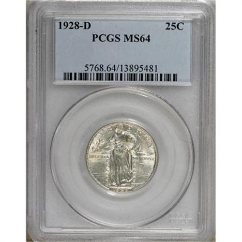 <B>1928-D 25C MS64 PCGS.</B></I> PCGS Population (699/570). NGC Census: (440/450). Mintage: 1,627,600. Numismedia Wsl. Price for NGC/PCGS coin in MS64: $252. (#5768)<BR><BR><B>Coin Engraver:</B> Hermon A. MacNeil<BR><BR><b>Shipping:</b> Coins & Currency (<a target="_blank" href="http://www.heritageauctions.com/common/shipping.php">view shipping information</a>\)