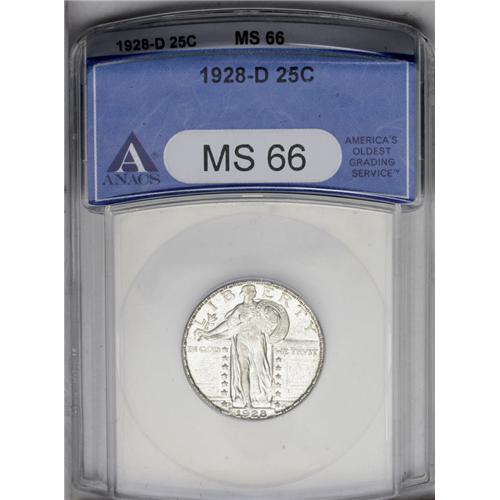1928-D 25C MS66 ANACS. The strike on this radiant Prem 1928-D[25C] MS66 ANACS.