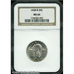 1928-D 25C MS66 NGC. The surfaces are highly lustr <B>1928-D 25C MS66 NGC.</B></I> The surfaces are highly lustrous, as often seen on Uncirculated Standing Liberty quarters, and there is a significant overlay of variegated purple, golden, and rose toning on each side. Very close to Full Head status. Population: 66 in 66, 8 finer (10/04). <BR><BR><B>Important notice:</B> Heritage usually auctions material at the rate of 200-250 lots per hour. On some occasions eBay Live bid software or the Internet may not be able to keep up with the pace of the auction. We recommend placing a realistic absentee bid now as insurance to avoid disappointment. Occasionally the auctioneer may eliminate or reject an eBay Live bid, and the auctioneer may also reopen a lot after the close of the eBay live bidding (usually because we missed an audience bid), and may reject your bid even if it shows you as the winning bidder. By bidding via eBay Live, you agree that Heritage may award the lot to another bidder at its sole discretion under the circumstances described above or any other reasonable circumstances. Since eBay bids are not shown to us until we open the lot on the floor, we treat those bids just like floor bids. In most cases the floor responds before the eBay bid is presented to us, due to Internet lag time, so for consistency we have made it a policy that floor bids are always considered first over tie eBay live bids. Also please note that all Heritage lots purchased through eBay Live carry a 20% Buyer's Premium. Please make sure you read the Terms and Conditions before you bid. This lot is being auctioned in conjunction with a live floor auction by Heritage Galleries & Auctioneers. All final auction and invoice information will be supplied by Heritage Galleries & Auctioneers, and all other information should be considered preliminary. Lot:5967