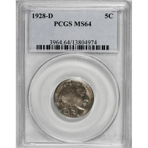 <B>1928-D 5C MS64 PCGS.</B></I> PCGS Population (1052/314). NGC Census: (746/122). Mintage: 6,436,000. Numismedia Wsl. Price for NGC/PCGS coin in MS64: $112. (#3964)<BR><BR><B>Coin Engraver:</B> James E. Fraser<BR><BR><b>Shipping:</b> Coins & Currency (<a target="_blank" href="http://www.heritageauctions.com/common/shipping.php">view shipping information</a>)
