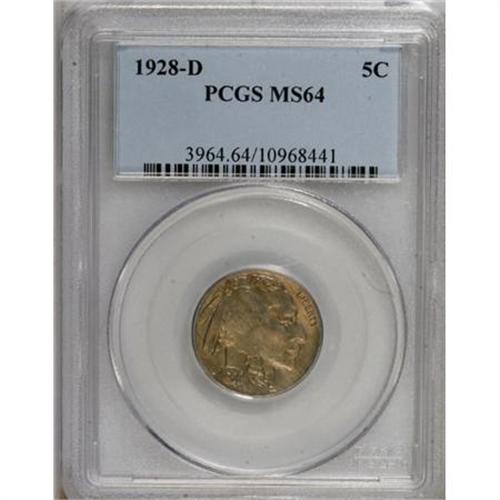 <B>1928-D 5C MS64 PCGS.</B></I> PCGS Population (1092/322). NGC Census: (746/122). Mintage: 6,436,000. Numismedia Wsl. Price for NGC/PCGS coin in MS64: $112. (#3964)<BR><BR><B>Coin Engraver:</B> James E. Fraser<BR><BR><b>Shipping:</b> Coins & Currency (<a target="_blank" href="http://www.heritageauctions.com/common/shipping.php">view shipping information</a>)