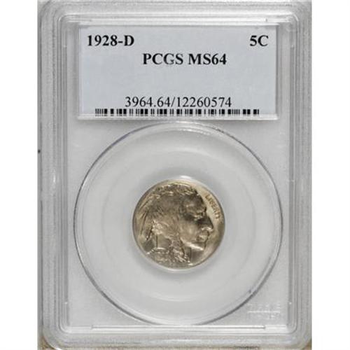 <B>1928-D 5C MS64 PCGS.</B></I> . PCGS Population (1113/329). NGC Census: (761/123). Mintage: 6,436,000. Numismedia Wsl. Price for NGC/PCGS coin in MS64: $112. (#3964)<BR><BR><B>Coin Engraver:</B> James E. Fraser<BR><BR><b>Shipping:</b> Coins & Currency (<a target="_blank" href="http://www.heritageauctions.com/common/shipping.php">view shipping information</a>)