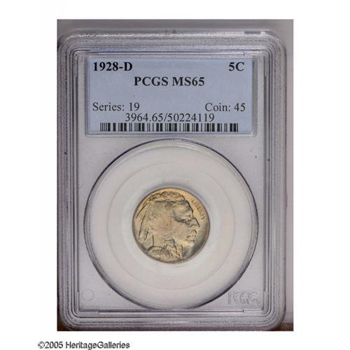 1928-D 5C MS65 PCGS. A thin veneer of powder-blue, bei 1928-D[5C] MS65 PCGS.