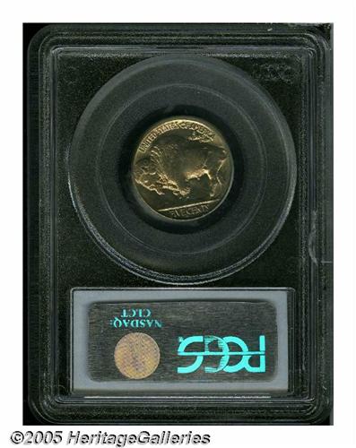 <B>1928-D<5C> MS65 PCGS.</B></I> Both sides exhibit deep, frosty luster and appealing pastel accents. The strike, while not fully executed, is much above average for the issue. One small black and green toning spot is mentioned on the bison's head.