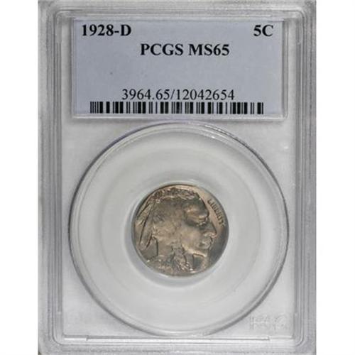 <B>1928-D 5C MS65 PCGS.</B></I> Rich gold-orange patina drapes the quicksilver surfaces of this luminous D-mint Gem. Though the centers show a degree of this issue's typical softness, the overall eye appeal is strong.<BR><BR><B>Coin Engraver:</B> James E. Fraser<BR><BR><b>Shipping:</b> Coins & Currency (<a target="_blank" href="http://www.heritageauctions.com/common/shipping.php">view shipping information</a>)