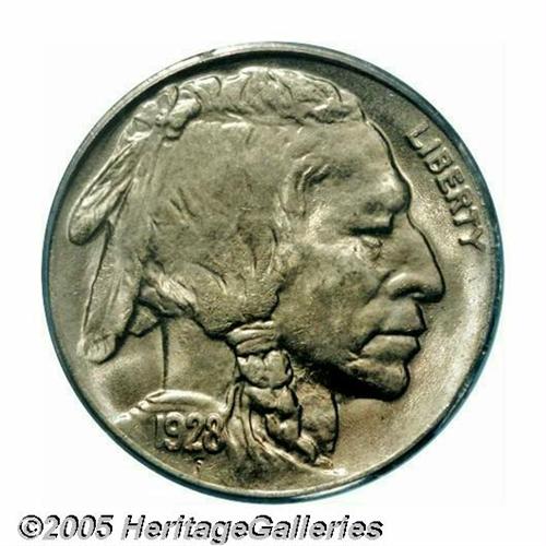 <B>1928-D<5C> MS66 PCGS.</B></I> While the centers are not quite fully struck, this lustrous Gem has extremely clean surfaces and bright salmon-gold patina. A conditionally rare issue that is usually encountered with a mediocre strike. Neither NGC nor PCGS has graded a 1928-D Nickel above MS66. Population: 26 in 66, 0 finer (3/05).