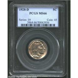 <TABLE cellSpacing=0 cellPadding=0 width="100%" bgColor=#000000 border=0><TBODY><TR><TD width="100%"><TABLE cellSpacing=1 cellPadding=3 width="100%" border=0><TBODY><TR><TD width="100%" bgColor=#79735c><FONT face=arial color=#ffffff size=3><B>Description</B> </FONT></TD></TR><TR><TD width="100%" bgColor=#ffffff><FONT face=arial size=2><B>1928-D 5C MS66 PCGS.</B></I> Perhaps a tad weak on the central designs on the Indian, the buffalo is well defined on the reverse. The coin has excellent mint bloom, with a satiny finish and no reportable toning. Scarce in this grade and currently unobtainable finer. Population: 12 in 66, 0 finer (8/03). </FONT></TD></TR></TBODY></TABLE></TD></TR></TBODY></TABLE><BR><A name=PricesRealized></A><TABLE cellSpacing=0 cellPadding=0 width="100%" bgColor=#000000 border=0><TBODY><TR><TD width="100%"><TABLE cellSpacing=1 cellPadding=3 width="100%" border=0><TBODY><TR><TD width="100%" bgColor=#79735c><A name=PR><FONT face=arial color=#ffffff size=3><B>Previous Prices from Heritage Auctions</B> </FONT></A></TD></TR><TR><TD bgColor=#f6f6ed><TABLE cellSpacing=0 cellPadding=0 width="100%" border=1><TBODY><TR><TD align=middle width="33%"><B>Date</B></TD><TD align=middle width="33%"><B>Service</B></TD><TD align=middle width="33%"><B>Price</B></TD></TR><TR bgColor=whitesmoke><TD width="33%"><B>02/01/1999</B></TD><TD width="33%">PCGS</TD><TD width="33%">$1,955.00</TD></TR><TR bgColor=whitesmoke><TD width="33%"><B>03/01/2003</B></TD><TD width="33%">PCGS</TD><TD width="33%">$3,680.00</TD></TR></TBODY></TABLE></TD></TR><TR><TD bgColor=#ffffff><FONT face=arial size=1 ?>PLEASE NOTE: All prices realized reflect the final hammer price PLUS the buyer's premium in auctions that charge a buyer's premium. Each item has a notation at the top of the listing indicating whether that lot included a buyer's premium. Example: A item that sells with a final hammer price of $100 and a 20% buyer's premium will display with a price realized of $120. All information listed is intended to be as accurate as possible, but errors are possible. Please use this guide carefully and inform us of any inaccuracies. </FONT></TD></TR></TBODY></TABLE></TD></TR></TBODY></TABLE><BR><TABLE cellSpacing=0 cellPadding=0 width="100%" bgColor=#000000 border=0><TBODY><TR><TD width="100%"><TABLE cellSpacing=1 cellPadding=3 width="100%" border=0><TBODY><TR><TD width="100%" bgColor=#79735c colSpan=6><FONT face=arial color=#ffffff size=3><B>Price Guide*</B> </FONT></TD></TR><TR bgColor=#f6f6ed><TD align=middle><B>Grade</B> </TD><TD align=middle><B>Coin World<BR>(Trends)</B> </TD><TD align=middle><B>Numismedia<BR>Retail</B> </TD><TD align=middle><B>Numismedia<BR>Wholesale</B> </TD><TD align=middle><B>Coin<BR>Universe</B> </TD><TD align=middle><B>Heritage<BR>Value Index</B> </TD></TR><TR bgColor=#ffffff><TD align=middle>65</TD><TD align=right>$865.00</TD><TD align=right>$760.00</TD><TD align=right>$610.00</TD><TD align=right>$1,000.00</TD><TD align=right>$654.38</TD></TR><TR style="FONT-WEIGHT: bold" bgColor=#cccfdd><TD align=middle>66</TD><TD align=right>$3,800.00</TD><TD align=right>---</TD><TD align=right>$3,125.00</TD><TD align=right>$5,750.00</TD><TD align=right>$3,342.50</TD></TR><TR bgColor=#ffffff><TD align=middle>67</TD><TD align=right>---</TD><TD align=right>---</TD><TD align=right>---</TD><TD align=right>---</TD><TD align=right>---</TD></TR><TR bgColor=#ffffff><TD colSpan=6><FONT size=1>*All information listed is intended to be as accurate as possible, but errors are possible. No item may be returned or refused based on this information which is provided as a service to our customers. You should contact each pricing source directly to determine the accuracy of this information. </FONT></TD></TR></TBODY></TABLE></TD></TR></TBODY></TABLE><BR><TABLE cellSpacing=0 cellPadding=0 width="100%" bgColor=#000000 border=0><TBODY><TR><TD width="100%"><TABLE cellSpacing=1 cellPadding=3 width="100%" border=0><TBODY><TR><TD width="100%" bgColor=#79735c><FONT face=arial color=#ffffff size=3><B>Population Guide</B> </FONT></TD></TR><TR bgColor=#ffffff><TD align=middle><!-- Begin Output of Population Grid--><TABLE cellSpacing=0 cellPadding=0 width="100%" border=0><TBODY><TR><TD vAlign=center><TABLE cellSpacing=0 width="100%" border=1 cellsadding="3"><TBODY><TR><TD vAlign=center><TABLE cellSpacing=0 cellPadding=3 width="100%" border=1><TBODY><TR><TD vAlign=center align=middle bgColor=#f0f1e8 colSpan=2 <CENTER><FONT face=Arial size=2><B>PCGS Pop </B></FONT><CENTER></CENTER></TD><TD vAlign=center align=middle bgColor=#f0f1e8 colSpan=2><CENTER><FONT face=Arial size=2><B>NGC Pop</B></CENTER></FONT></TD></TR><TR><TD vAlign=center><FONT face=Arial size=2>(66)</FONT> </TD><TD vAlign=center align=right><FONT face=Arial size=2>12</FONT> </TD><TD vAlign=center><FONT face=Arial size=2>(66)</FONT> </TD><TD vAlign=center align=right><FONT face=Arial size=2>4</FONT> </TD></TR><TR><TD vAlign=center><FONT face=Arial size=2>(>66)</FONT> </TD><TD vAlign=center align=right><FONT face=Arial size=2>0</FONT> </TD><TD vAlign=center><FONT face=Arial size=2>(>66)</FONT> </TD><TD vAlign=center align=right><FONT face=Arial size=2>0</FONT> </TD></TR></TBODY></TABLE></TD></TR></TBODY></TABLE></TD></TR></TBODY></TABLE><!-- End Output of Population Grid--> Important notice: Heritage usually auctions material at the rate of 200-250 lots per hour. On some occasions eBay Live bid software or the Internet may not be able to keep up with the pace of the auction. We recommend placing a realistic absentee bid now as insurance to avoid disappointment. Occasionally the auctioneer may eliminate or reject an eBay Live bid, and the auctioneer may also reopen a lot after the close of the eBay live bidding (usually because we missed an audience bid), and may reject your bid even if it shows you as the winning bidder. By bidding via eBay Live, you agree that Heritage may award the lot to another bidder at its sole discretion under the circumstances described above or any othe