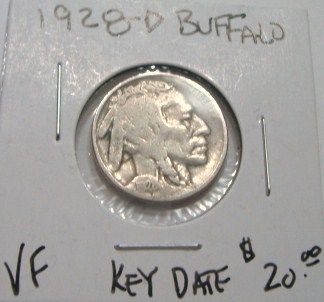 1928-D BUFFALO NICKEL KEY DATE RED BOOK VALUE IS $20.00 *RARE VERY FINE GRADE - NICE NICKEL*!! ***Coin, Currency & All Items Listed in this auction - Grades, Conditions and Values are not Safe Deposit Coins LLC Responsibilty. Grades, Condition and Values are determined by Consigner(s) & Buyers ONLY***