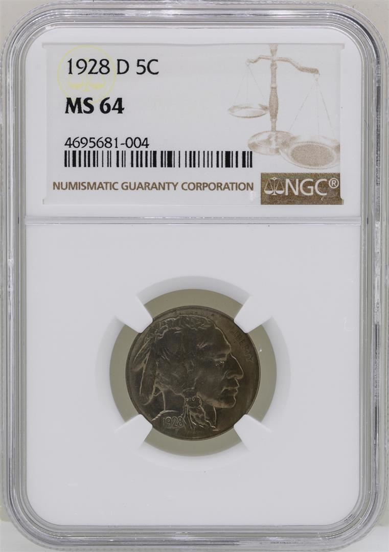 One 1928-D Buffalo Nickel Coin NGC MS64. NGC Certified.