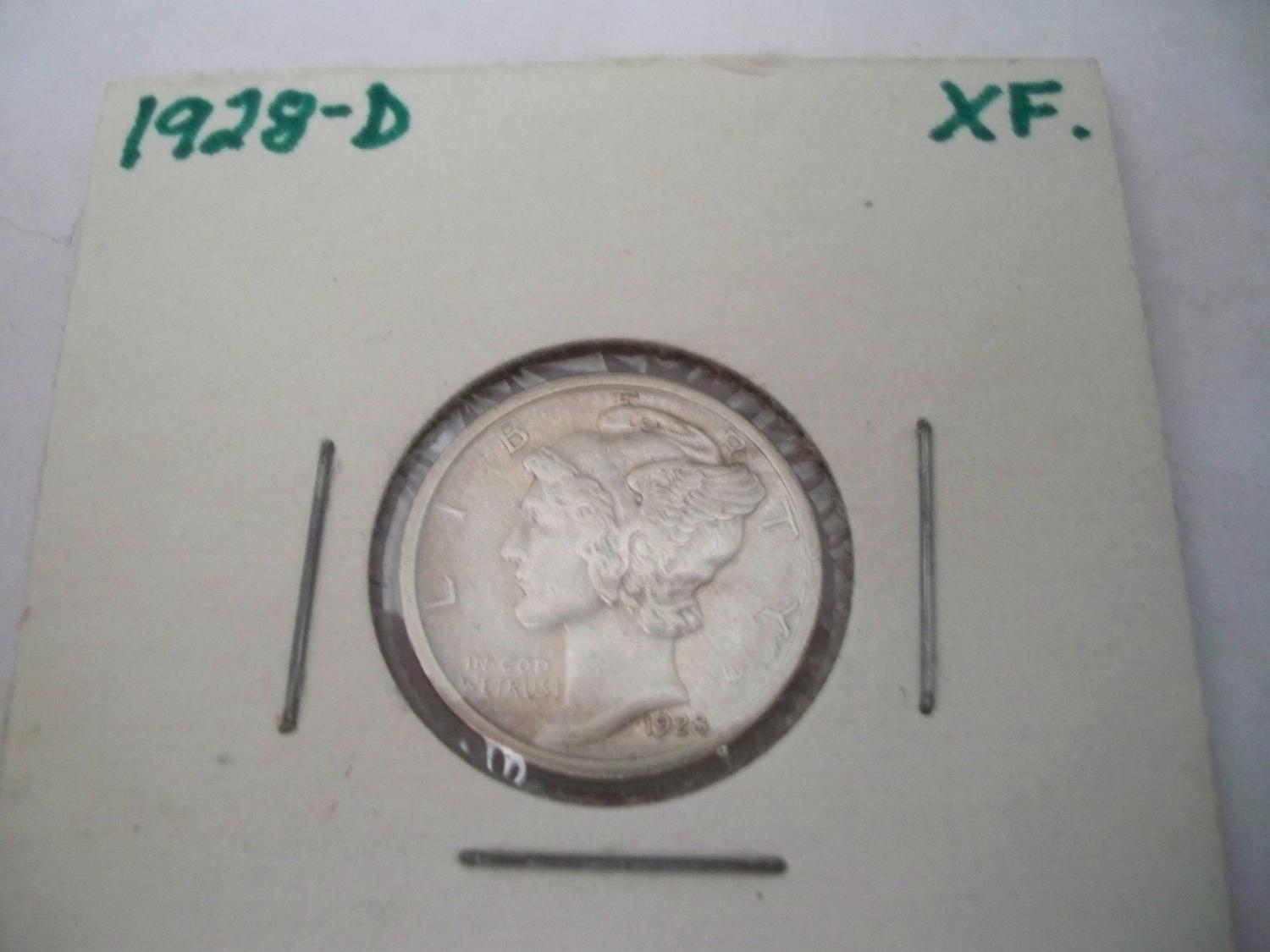 1928-D Mercury Silver Dime - XF/AU