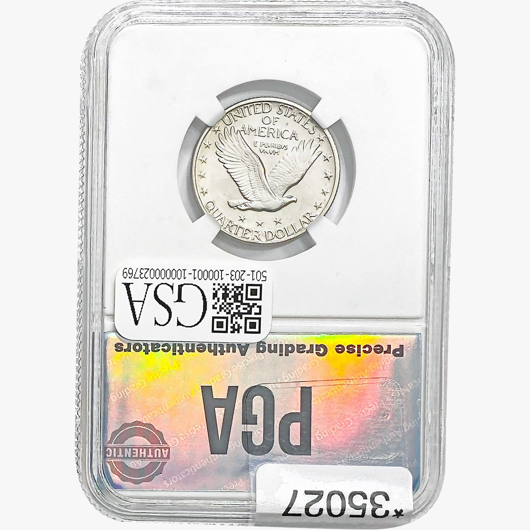 COINS AND CURRENCY LISTED IN GSA’S CATALOG AS GRADED AND ENCAPSULATED BY PCGS, NGC, ANACS, ICG, PCGS CURRENCY, PMG, PCGS BANKNOTE GRADING, CMC OR ANY OTHER THIRD-PARTY GRADING SERVICE ARE LIKEWISE SOLD “AS-IS” EXCEPT AS EXPRESSLY SET FORTH HEREIN. ALL THIRD-PARTY GRADING SERVICE GUARANTEES, INCLUDING AUTHENTICITY, ARE THE SOLE RESPONSIBILITY OF THE THIRD-PARTY GRADING SERVICE AND NOT WARRANTIES OR GUARANTEES OF GSA. BIDDERS SHOULD CONTACT THESE THIRD-PARTY GRADING SERVICES DIRECTLY WITH RESPECT TO ANY CLAIMS OR QUESTIONS THEY MAY HAVE CONCERNING THEIR GUARANTEES AND WARRANTIES. BIDDERS ACKNOWLEDGE AND AGREE THAT AUCTIONEER IS NOT BOUND BY OR LIABLE FOR ANY OPINION OR CERTIFICATION BY ANY THIRD-PARTY GRADING SERVICE. REMOVAL OF A PRODUCT FROM ITS PROTECTIVE CASING OR HOLDER OR ALTERATION OF ANY COIN HOLDER WAIVES ALL RIGHTS CONCERNING THE PRODUCT CONTAINED THEREIN.