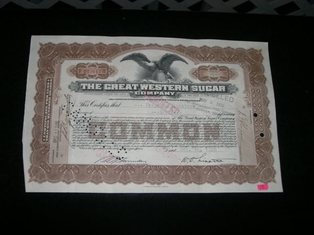 1928 EXTREMELY RARE 60 SHARES STOCK CERTIFICATE *THE GREAT WESTERN SUGAR COMPANY - NICE STOCK CERTIFICATE*!! ***Coin, Currency & All Items Listed in this auction - Grades, Conditions and Values are not Safe Deposit Coins LLC Responsibilty. Grades, Condition and Values are determined by Consigner(s) & Buyers ONLY