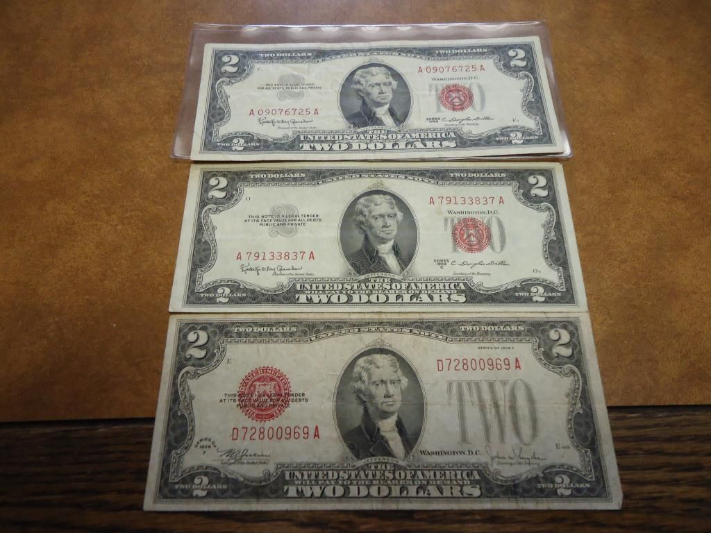 1928-F,53-C & 63 TWO DOLLAR RED SEAL US NOTES