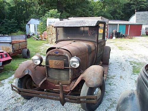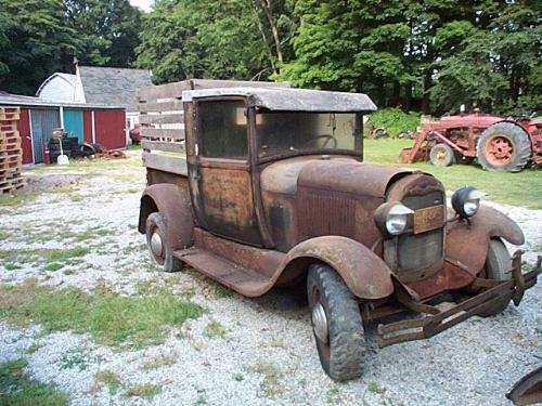 MODEL A TRUCK, COMPLETE, HAS RUST IN BODY, INTERIOR ORIGINAL AND NEEDS WORK, FLATHEAD MTR-STICK, DOES NOT RUN. BOX IS NOT BAD. BLACK- ROD-RESTORE