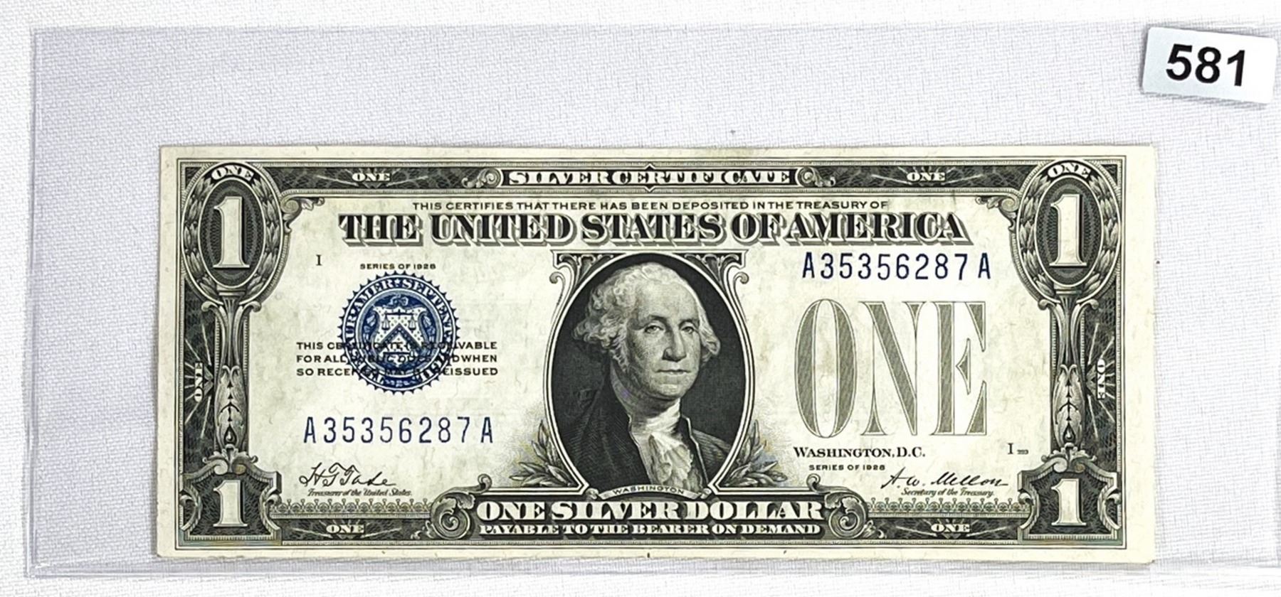1928 Funny Back $1 Silver Certificate CLOSELY UNC
