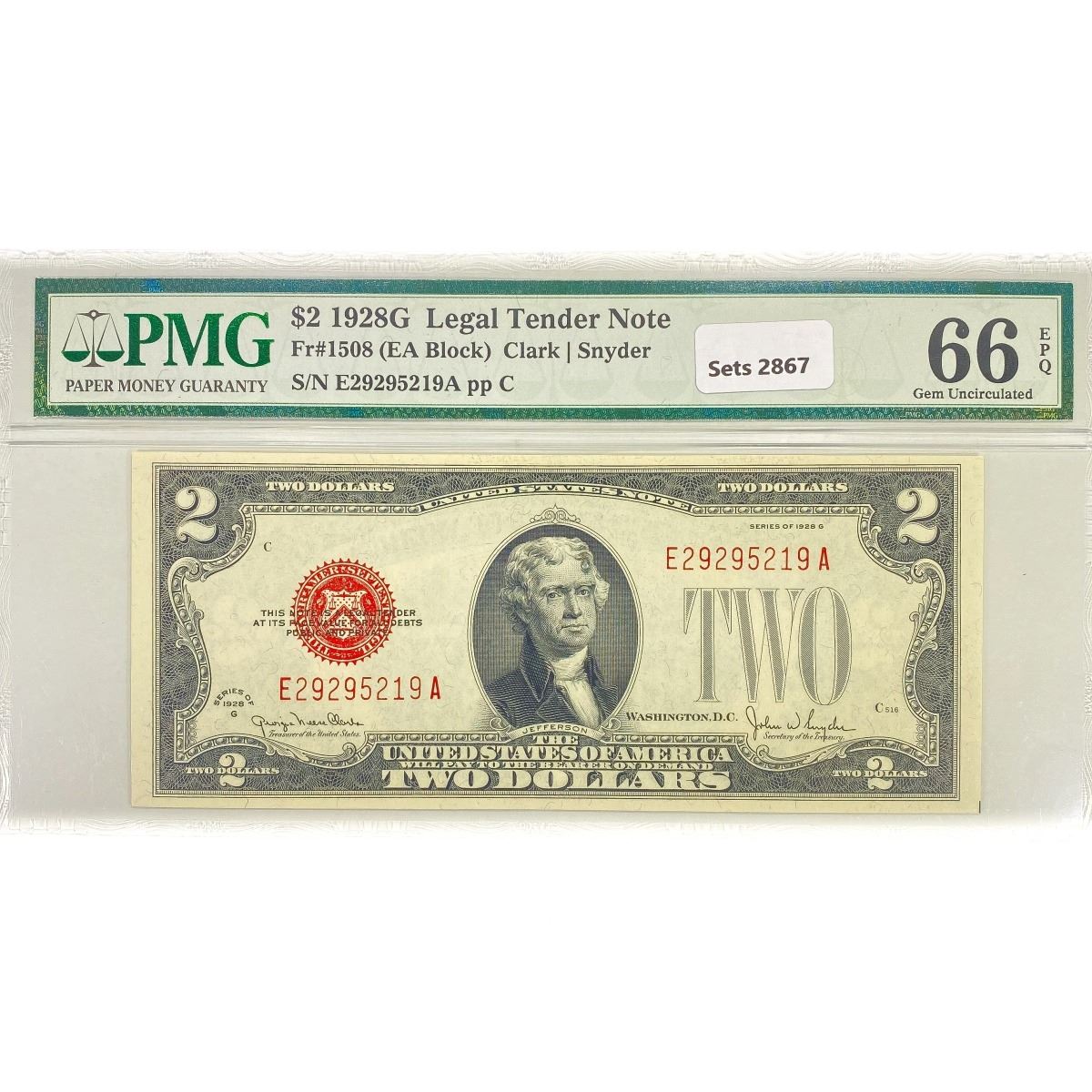 1928 G $2 Legal Tender Note PMG GEM UNC 66