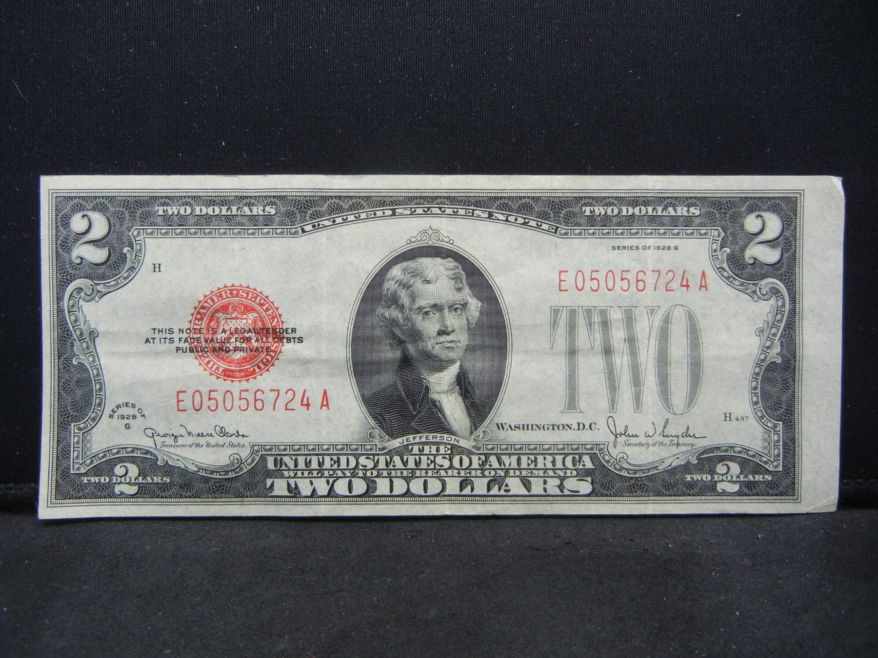 1928-G $2 Red Seal Silver Certificate. Nice Crisp Note. Serial # E05056724A