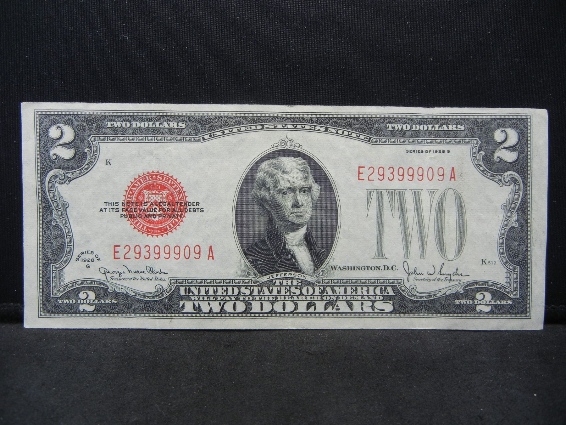 1928-G $2 Red Seal United States Note. Nice Crisp Note. Serial # E29399909A.