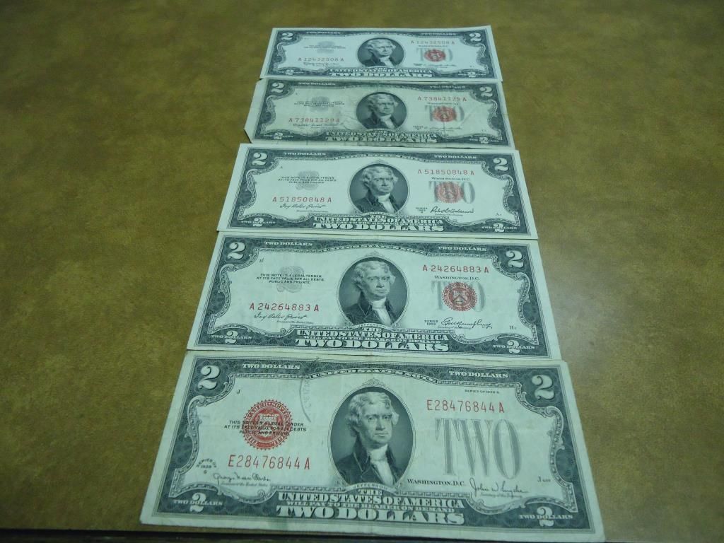 1928-G,53,53-A,53-B & 63 $2 US RED SEAL NOTES