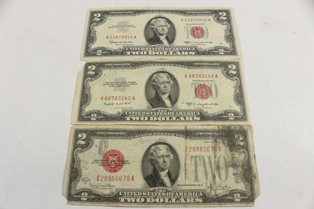 1928-G,53-B & 63 $2 US RED SEAL NOTES