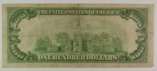 1928 GOLD REDEEMABLE $100.00 FEDERAL RESERVE NOTE, CIRCULATED