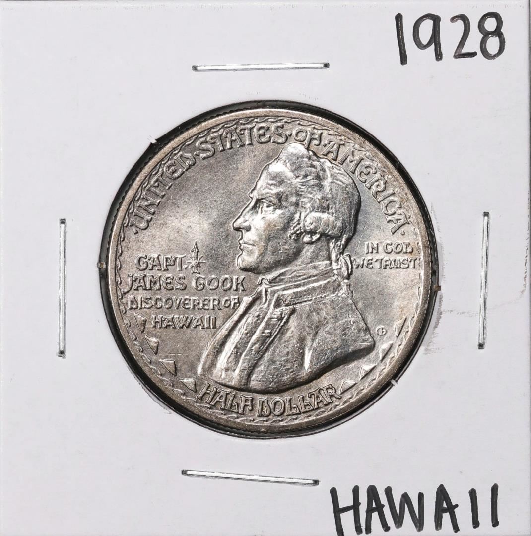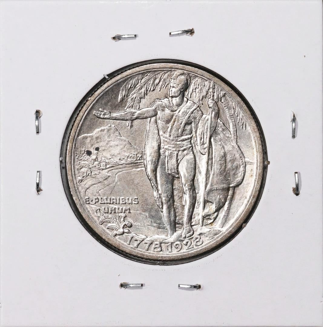 One 1928 Hawaii Commemorative Silver Half Dollar Coin.