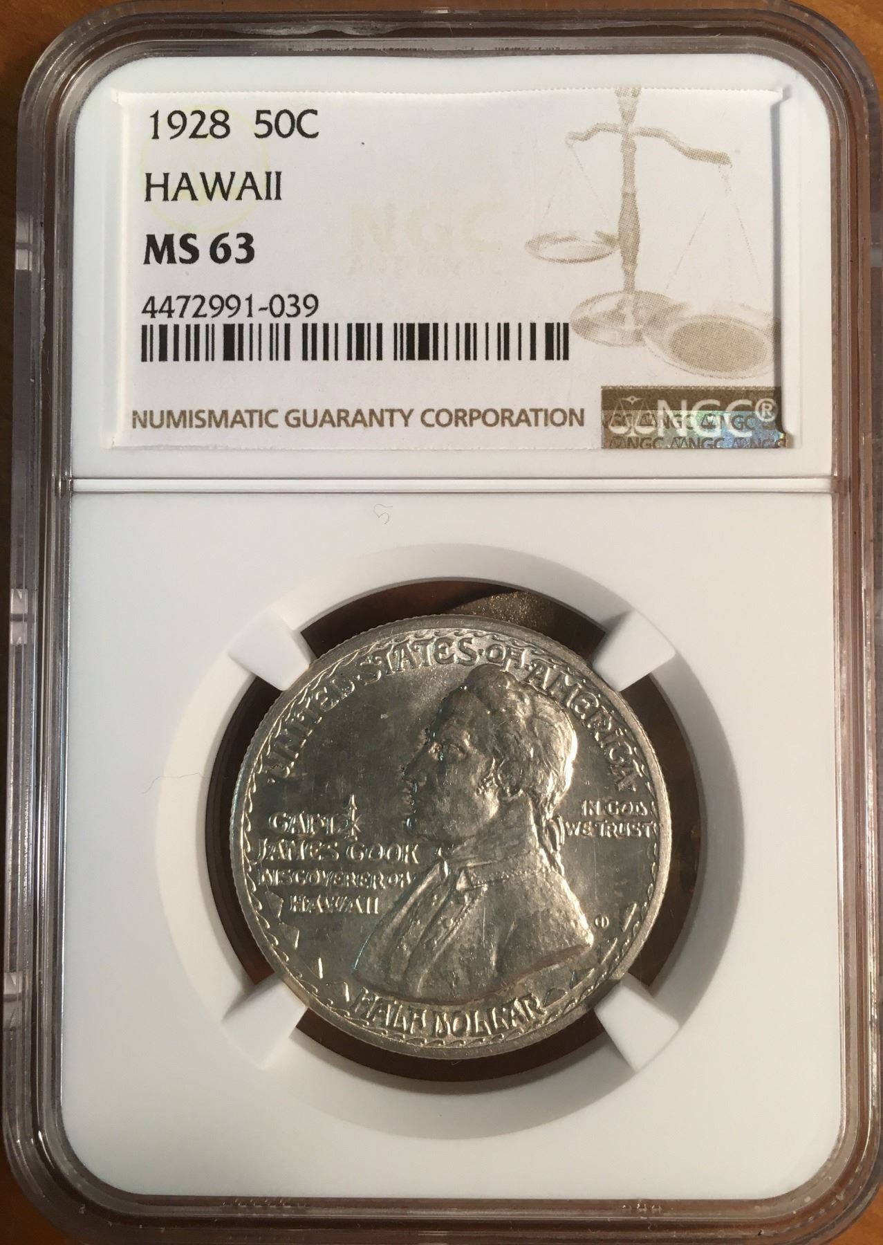 One 1928 Hawaii Half Dollar Coin NGC MS63.