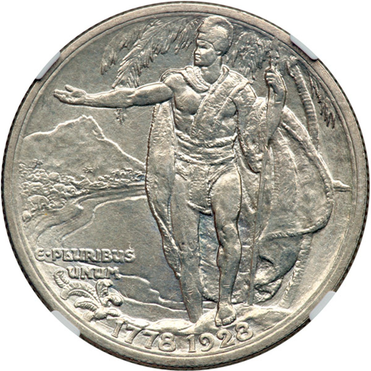 1928 Hawaiian Half Dollar. NGC Unc Details, improperly cleaned. We disagree, looks like a gorgeous gem to us. Our grade is MS-65. See if you don't agree with us. Only 10,000 Hawaii Commemoratives were struck and sold. Half the issue was reserved for residents of the Territory of Hawaii (which became a State in 1959). The rest were made available to the rest of the country. Scarce in Gem condition (PCGS # 9309) .