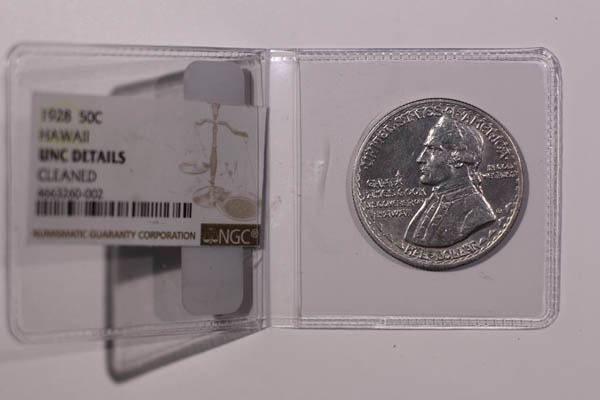 1928 Hawaiian Half Dollar. NGC graded Details of Uncirculated. Removed from slab, original tag included. Cleaned PCGS # 9309 .