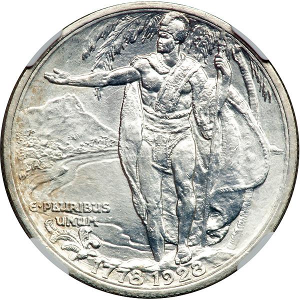 1928 Hawaiian Half Dollar. Improperly Cleaned. Our grade is MS60+ Untoned. Some minor hairlines (PCGS # 9309) .