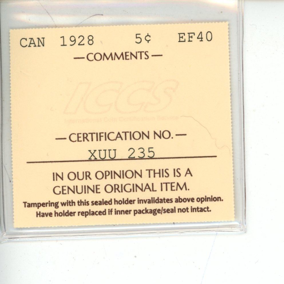1928 ICCS Graded - Canadian Five Cent - EF40