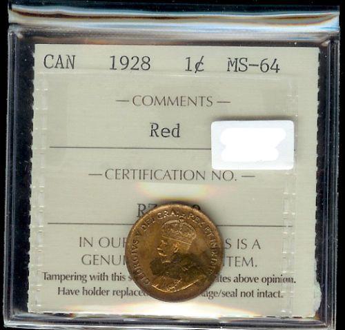 1928 ICCS MS64 Red, 75% red lustre. Scarce!