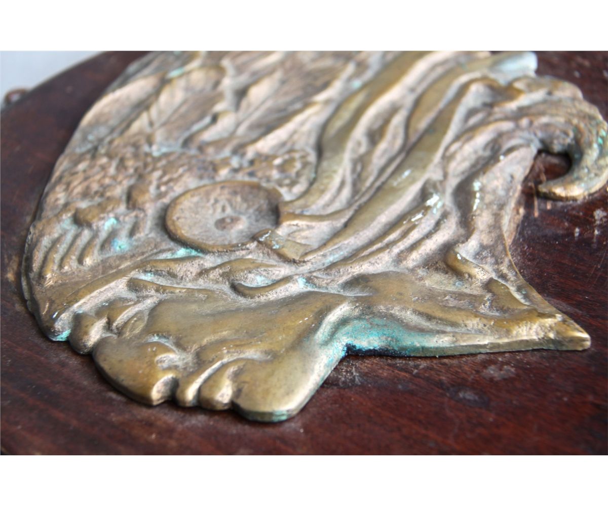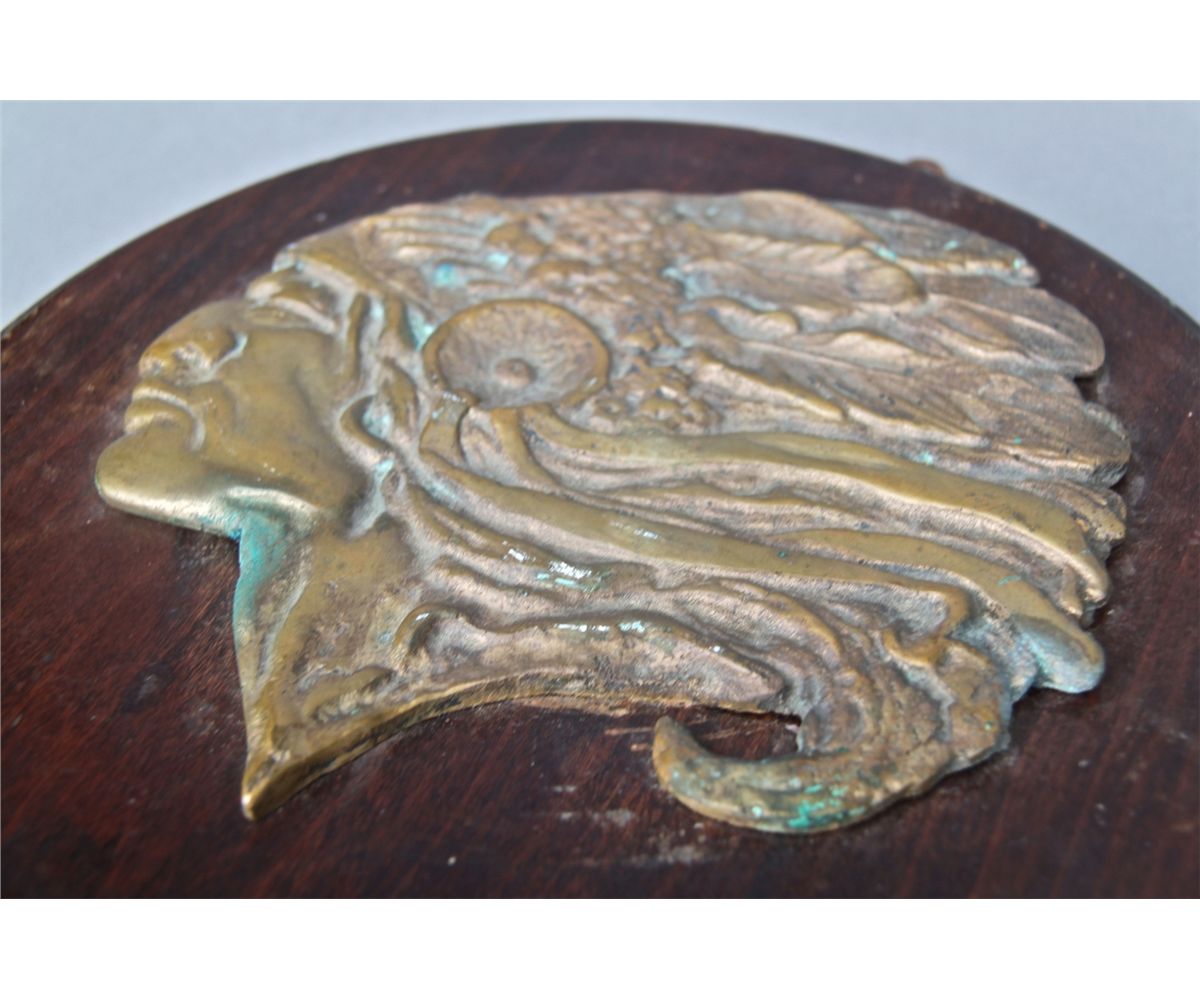 1928 Indian Head Plaque (Round shape) Bronze on Wood, Signed [Height/Length (in)= 11.25, Width (in)=11.25, Depth (in)=1, Weight (lbs)=6] With C.O.A. signed by Chief Joe Dan Osceola & Seminole Tribe. Go to: www.pangaea-auctions.com for more information about this collection.